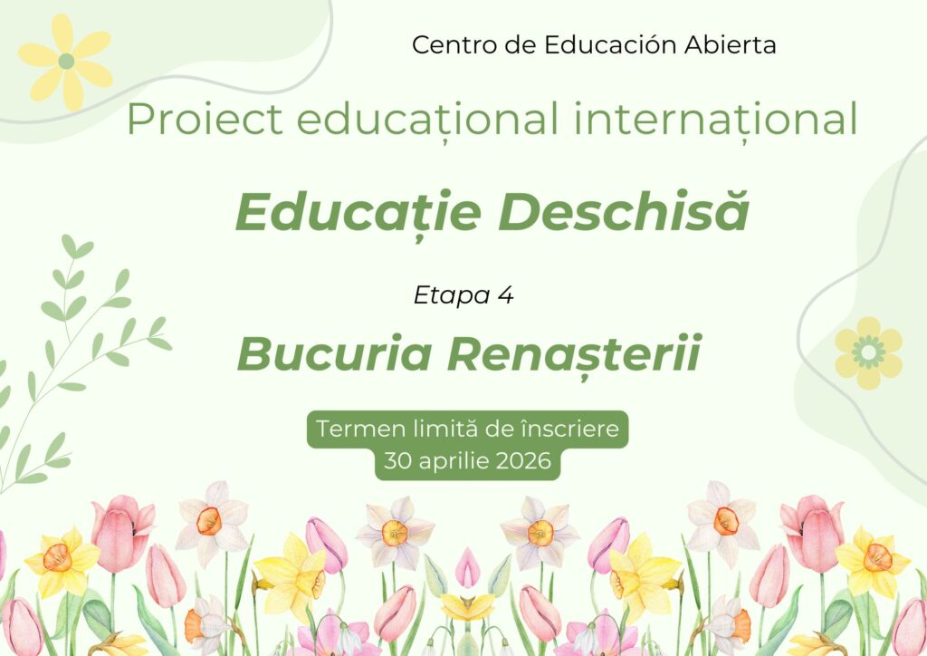 He participado en el proyecto internacional Educatie Deschisa y estoy muy contenta. ¡Felicitaciones por todo lo que habéis logrado! Ha sido una experiencia maravillosa y muy enriquecedora. Me ha permitido aprender, conectar con personas increíbles y descubrir nuevas perspectivas. Gracias por vuestro esfuerzo y dedicación. ¡Ha sido un verdadero placer formar parte de esto)